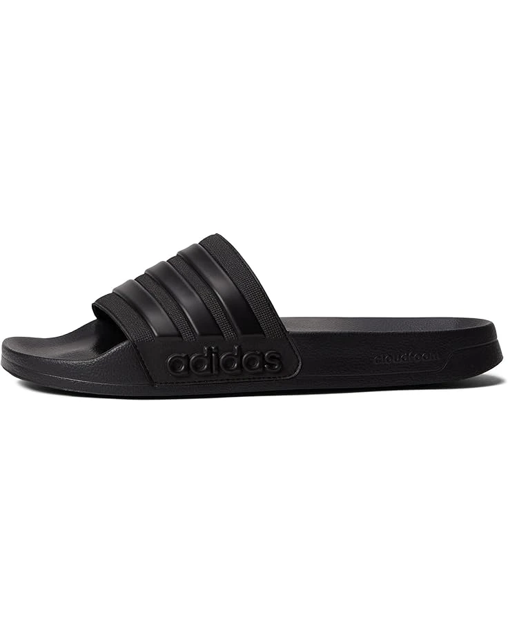 - Slip into these adidas Adilette slides for cushy comfort. The quick-drying design is made for post-swim bliss or any time relaxation. The bandage-style upper and Cloudfoam footbed combine for a supportive fit. The EVA outsole offers both cushioning and traction.