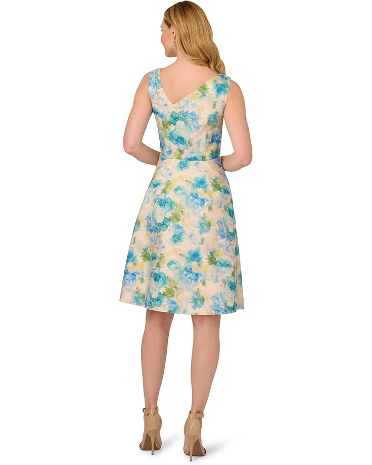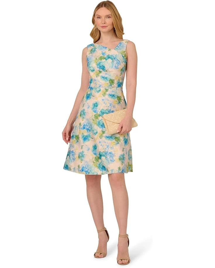 - Flowy, feminine, fabulous, the Adrianna Papell® Asymmetrical Jacquard Midi Dress is a perfect brunch dress. This dress features asymmetric neckline, sleeveless style, blouson silhouette, and zippered back closure.