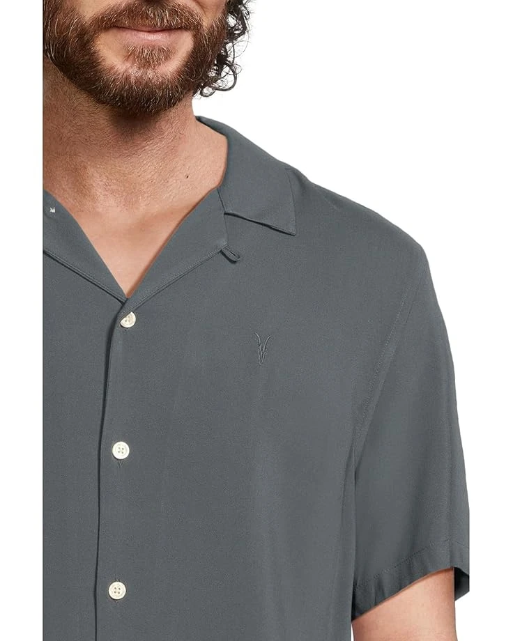 - Dress up for casual or semi-formal occasions in absolute style wearing AllSaints™ Venice Short Sleeve Shirt. It comes with a notch lapel collar, short sleeves, and full-button closure. The shirt is designed to offer a regular fit.