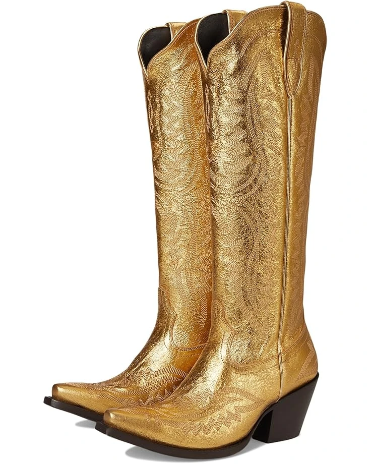 - Be the absolute fashionista by complementing your looks with the pull-on style Ariat® Casanova Western Boots. Crafted with a leather upper, leather lining, and leather insole, the Equestrian Boot maintains durability and looks magnificient. It comes in an above-the-knee silhouette with a curved top & pull straps, a pointed toe design, a zipper closure, and a block heel detail. The intricate embroidery on the shaft amps up the look.