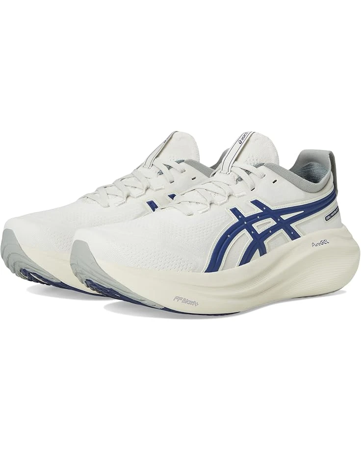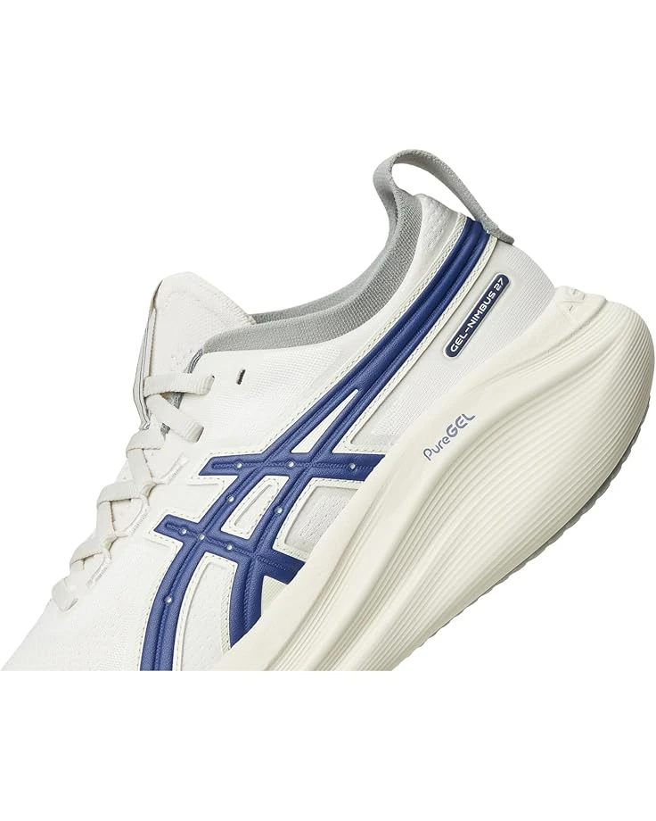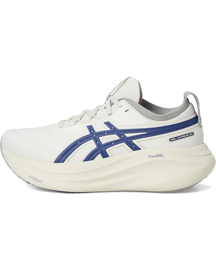 - The GEL-NIMBUS 27 shoes soft cushioning properties help you feel like your landing on clouds. This design is revamped to help create a softer and smoother running experience. A soft engineered jacquard mesh upper comfortably wraps your foot while supplying advanced ventilation. Additionally, the knit tongue and collar help provide a soft and supportive feel. By using FF BLAST™ PLUS ECO cushioning, this trainer creates a lighter and softer cushioning experience with enhanced focus on sustainability. Lastly, HYBRID ASICSGRIP™ outsole rubber helps create better traction, improved softness, and advanced durability.