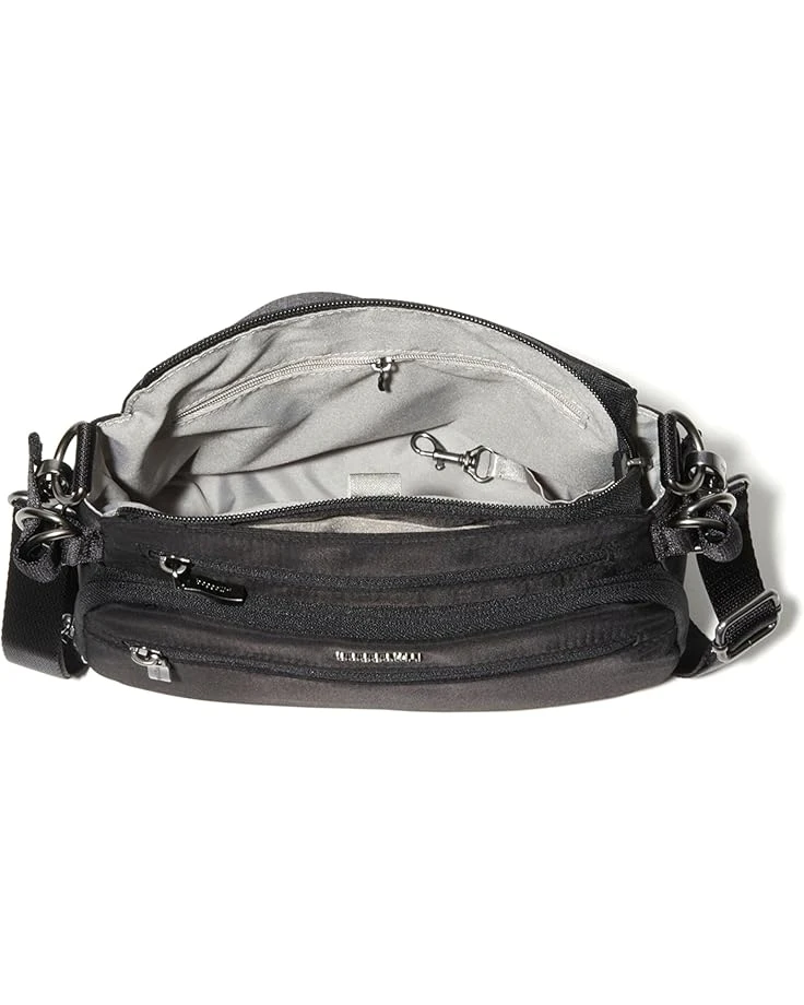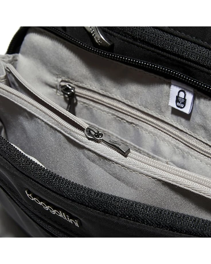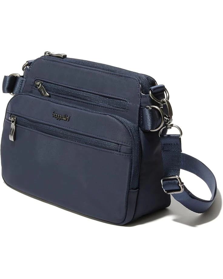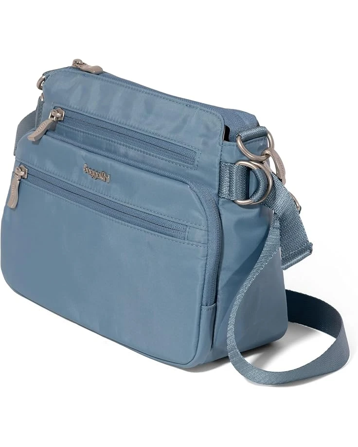 - This Baggallini® Marais Crossbody Bag makes accessing your essentials quick and easy. Keep cards and cash separate from the main compartment with a built-in wallet with RFID-protection. It features a detachable & adjustable crossbody strap, 6 credit card slots, lipstick loop, privacy pocket, and a zipper closure. Need a spot for your phone, too? Store it in the scratch-resistant phone pocket and access it when needed-no fumbling with zippers.