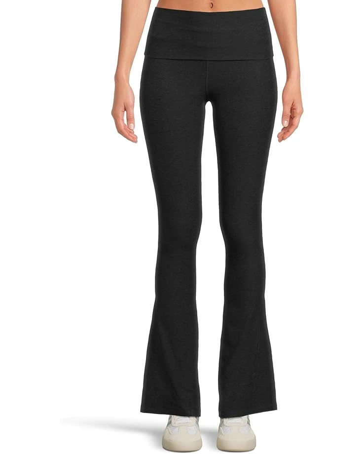 - Simple but so essential. The Beyond Yoga® Spacedye Foldover Pants are designed with a classic bootcut look, with the softness of the Spacedye fabric and a foldover waistband. They are fitted through the waist and thigh, with a slightly flared ankle. Designed to uniquely flatter every shape, these wide-leg pants are the only active yoga pants you can wear for work or play, they are the perfect blend of fashion and function, and the one piece you’ll wear again and again.