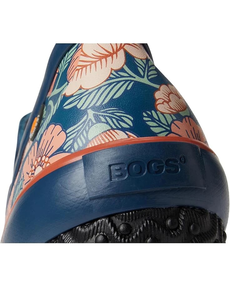 - The Bogs® Patch Slip On Tapestry Floral waterproof boots feature a bio-based footbed to offer comfort while also reducing environmental impact. They come with a built-in heel kick for hands-free removal, making them incredibly convenient. Crafted with ultra-soft and flexible rubber upper, they provide a comfortable fit. The BOGS Max-Wick technology helps to evaporate sweat, keeping your feet dry, while the DuraFresh natural bio-technology activates combat odors. Additionally, the steel shank provides support and stability, making these slip-ons a practical and stylish choice for everyday wear.