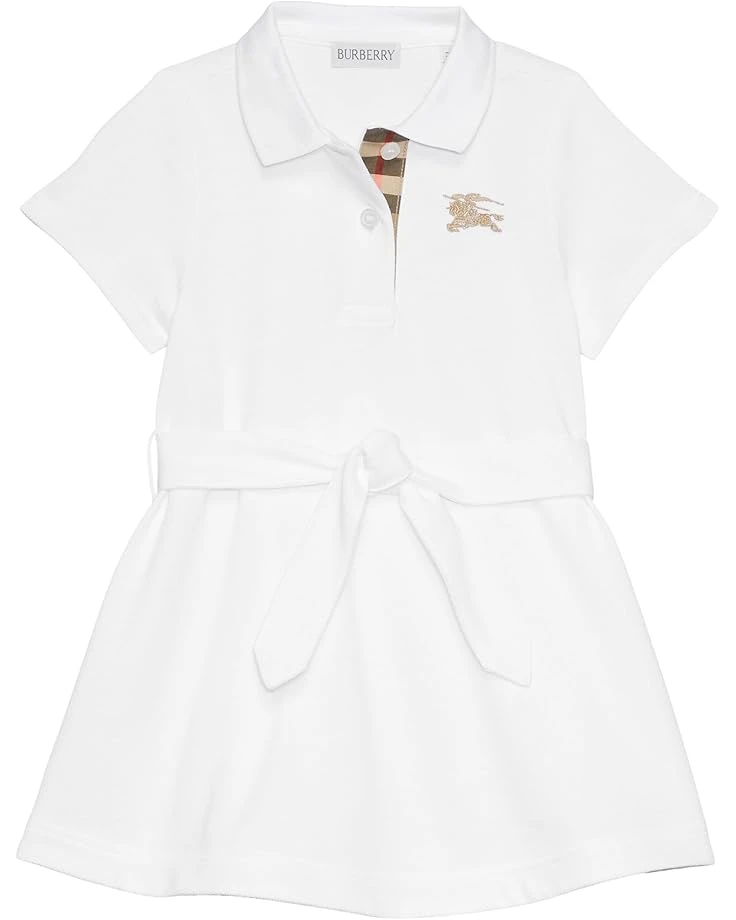 - Classic elegance meets playful charm! The Burberry® Kids Astrid Polo Dress brings a touch of sophistication to your little one’s wardrobe. Featuring the iconic equestrian knight embroidery on the chest, this dress blends timeless style with youthful flair. The collared neckline and short sleeves ensure a polished look, while the belted waist and A-line silhouette provide a flattering fit. Designed to hit just around the knee, it’s perfect for both special occasions and everyday adventures.