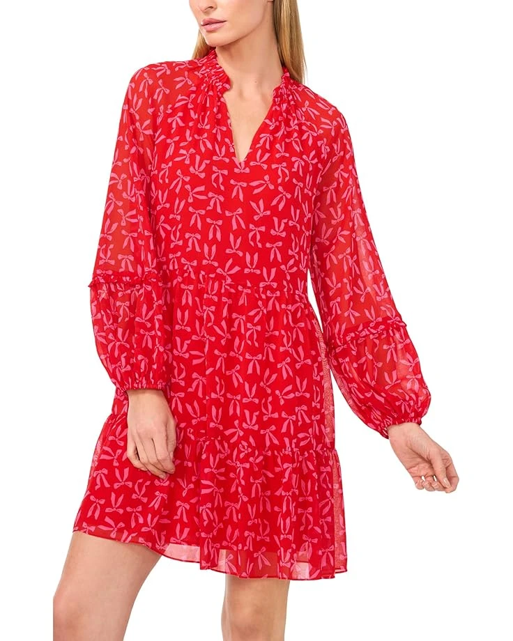 CeCe Bow Print Long Sleeve Babydoll Dress | Dresses