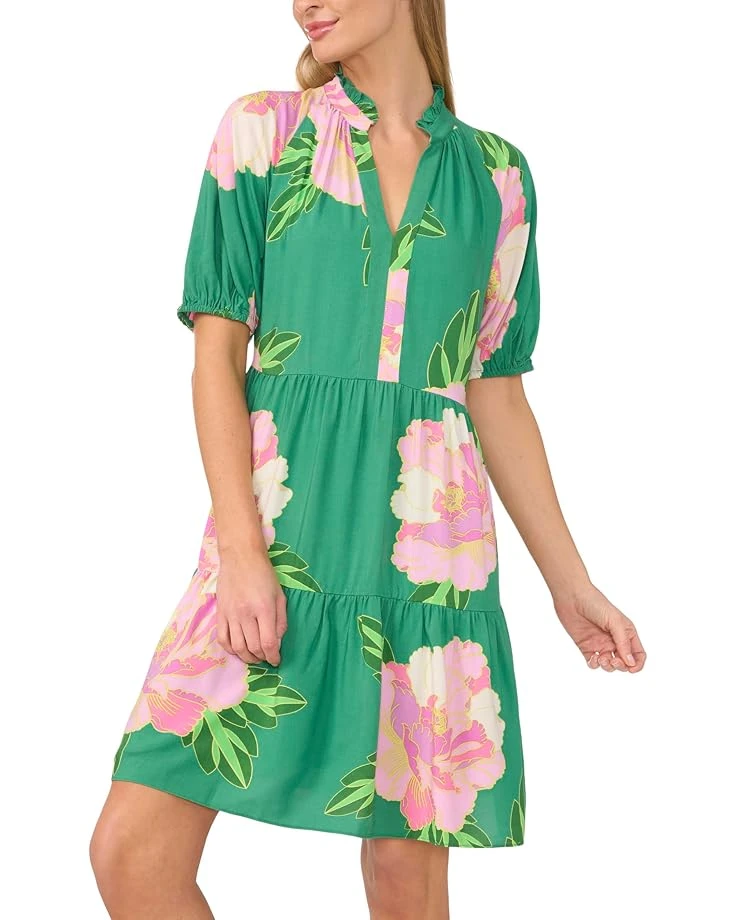 - Whimsical and wonderful: The CeCe™ V-Neck Baby Doll Tiered Dress is a must-have for your warm days wardrobe. This above-the-knee, A-line beauty features a flattering V-neck and short sleeves, perfect for transitioning from day to night. Crafted from Radiant Peony Challis, its vibrant floral print brings a refreshing, lively touch to your wardrobe. The tiered body adds playful movement, while the soft microfiber blend band offers dynamic comfort and support, ensuring you stay comfy all day. Fully lined and with flatlock seams for ultimate comfort, this dress is not only extra durable but also a must-have for any stylish, carefree look. Pull it on, and embrace the season’s most effortless style!