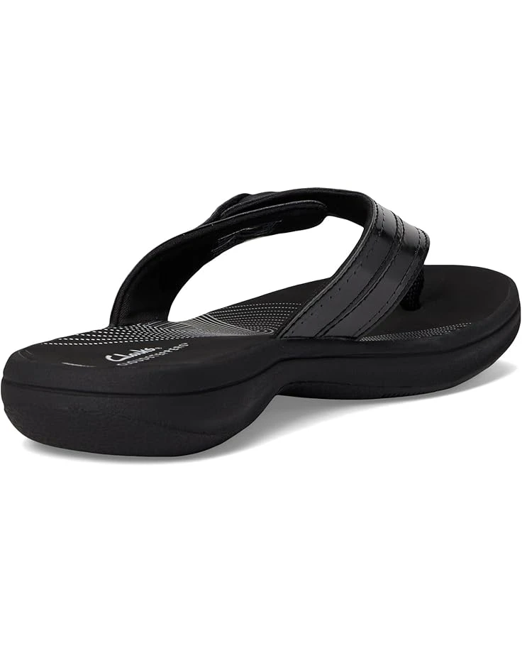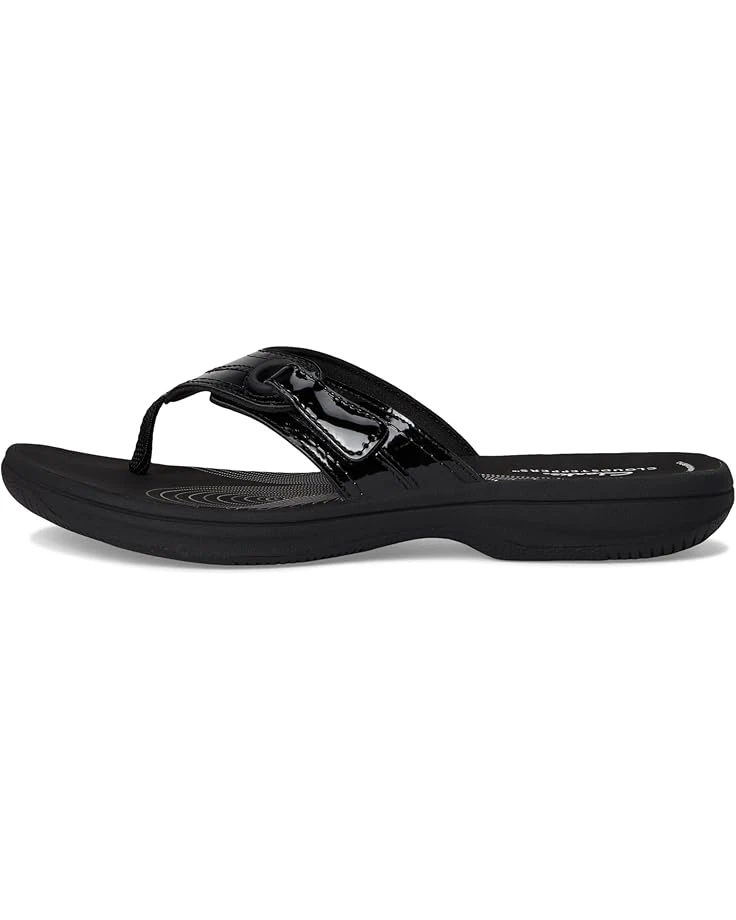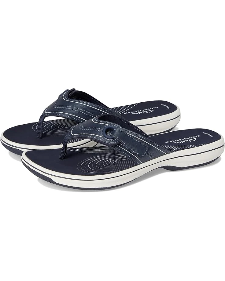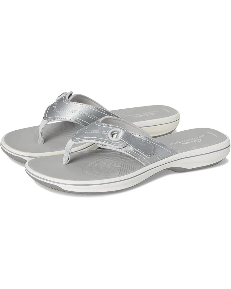 - The Clarks™ Breeze Reyna sandals are part of the Clarks™ Cloudsteppers™ collection, so you know that total underfoot comfort is a sure thing. Built for summer holidays and lazy weekends in the back garden, these flip-flops are crafted with a soft nylon upper for a skin-gentle feel while the grippy foam outsole makes for confident support, great grip, and easy-breezy steps. Their mesh lining keeps your feet cool and comfortable. These slide slippers are designed with a cushion Soft™ PU foam footbed that delivers shock absorption and comfort.
