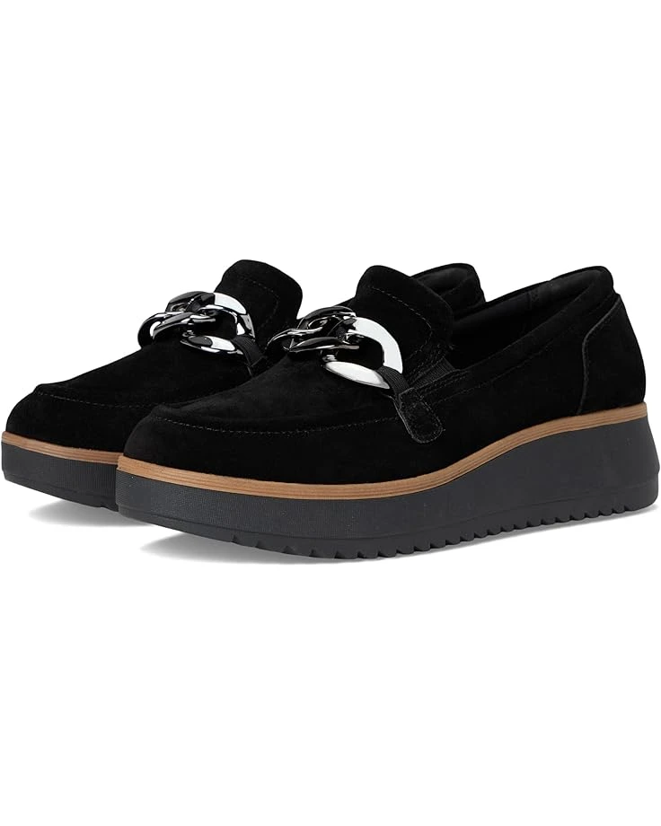 - Head to the pathway of panache wearing Clarks™ Zylah May Flats. The pull-on footwear features leather upper with decorative chain on the vamp and platform wedge heel for added elevation.