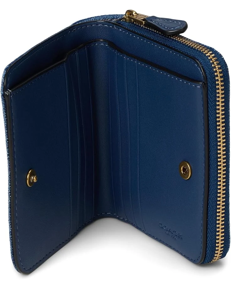 - Stay organized, stay stylish, and make a statement wherever you go with the COACH™ Essential Billfold Wallet. Crafted from premium denim and refined calf leather, this wallet exudes luxury while providing ultimate durability. With eight credit card slots, it offers ample room to organize your essentials, ensuring you’re always ready to go. The full-length bill compartment keeps your cash secure and easily accessible, while the snap closure adds an extra layer of convenience. Need change on the go? The outside zippered coin pocket ensures quick access to your coins, combining practicality with sleek sophistication.