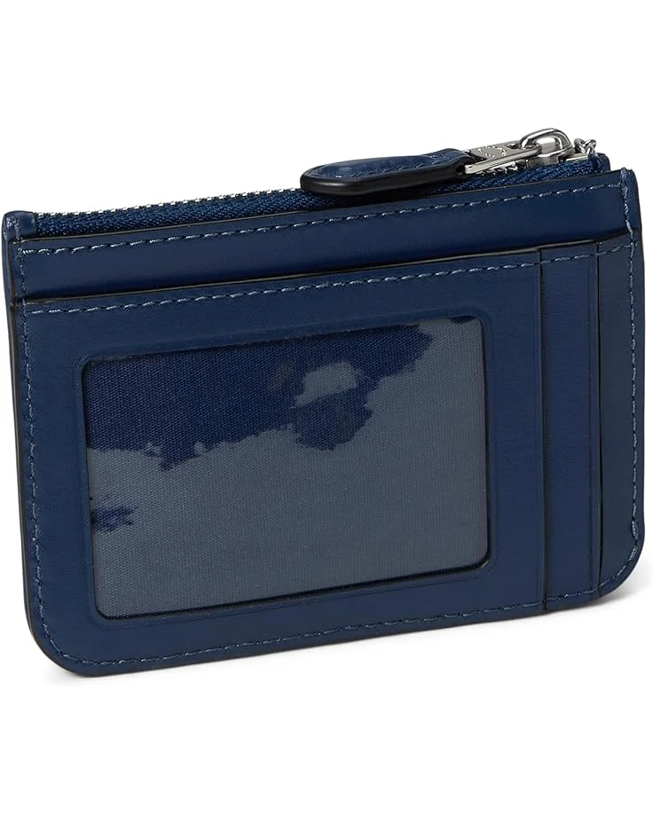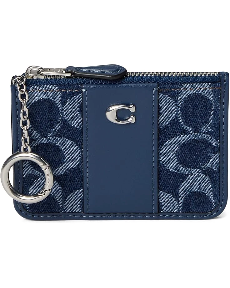 - Made from signature denim and refined calf leather, the COACH™ Essential Mini ID Card Case In Signature Denim is perfect for keeping your money and cards organized in one place. This denim card case comes with an attached split key ring and a zippered top closure. Compact and stylish, this zip-up card case is designed with a credit card slot and an ID window.