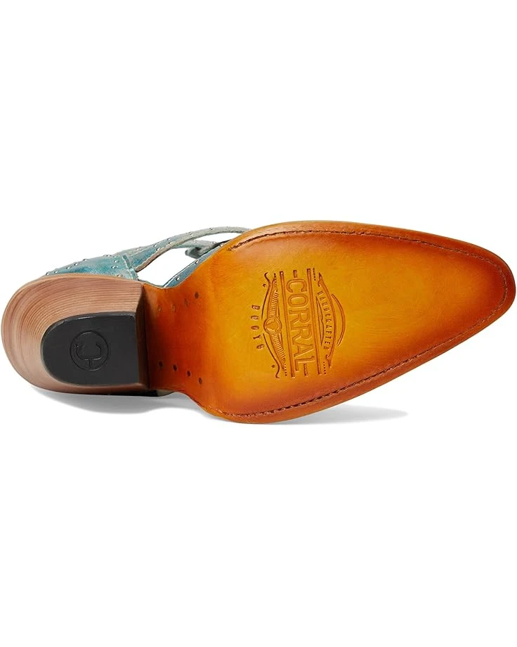 - Stun everyone with your exquisite taste in fashion wearing Corral™ Boots Z2028 Shoes. The ankle-length, pointed toe shoes are designed with a leather upper with metallized straps & studs, leather lining, and a leather insole. The zipper closure on the back ensures a secured fit and the stacked cuban heel elevates the look.