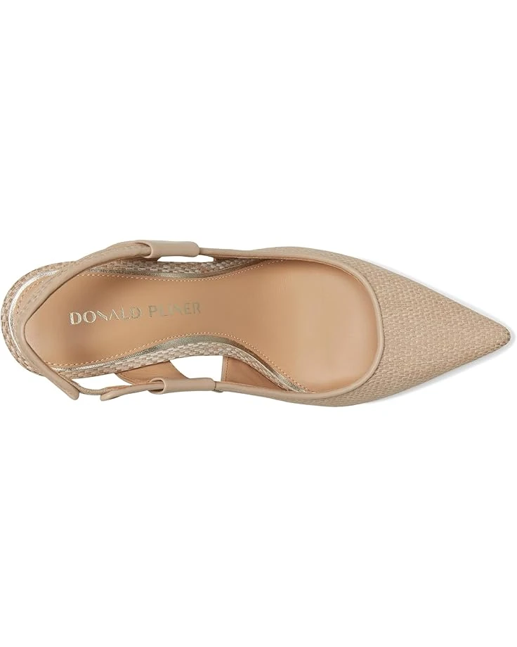- Make a statement with these Donald Pliner® Elliemay chic slingback pumps. Crafted from leather upper, lining, and insole, this pair of sandals features pointed toe, stiletto heel, slingback strap, and brand detailing on the footbed.