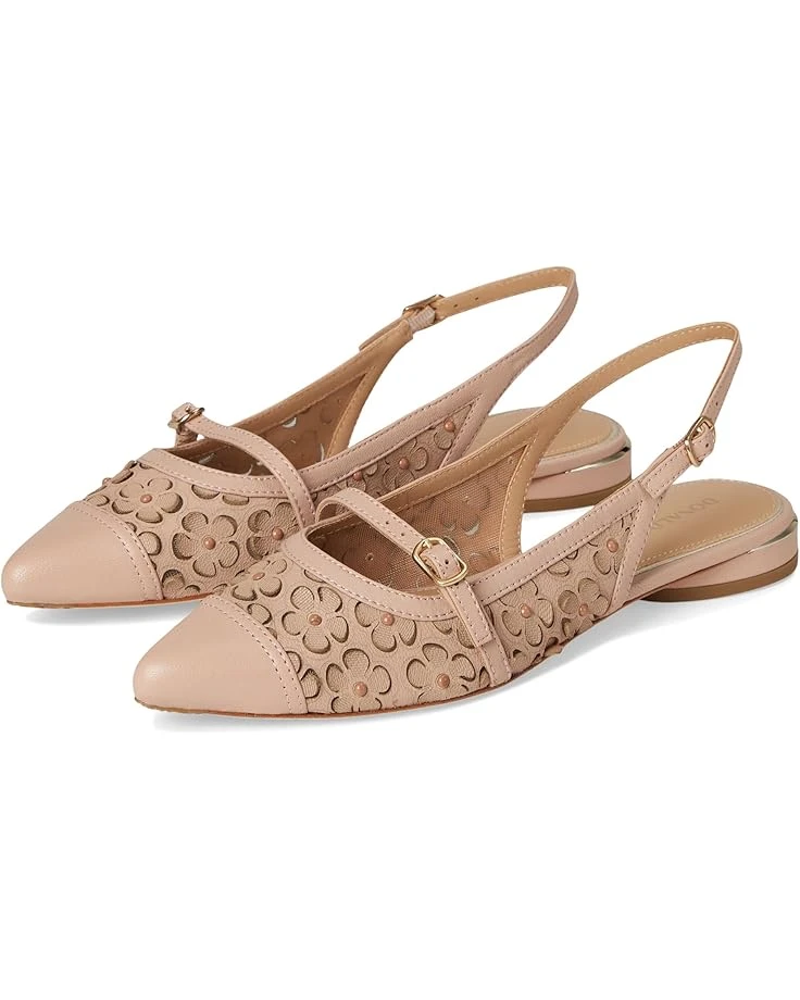- A modern classic, the Donald Pliner® Rozamay slingback is crafted with a nylon mesh lining and silky soft nappa leather upper elevated by intricate floral details in a refined, pointed toe silhouette. A low barrel heel with electroplated detail adds bold personality as well as stability to the design. This style is made for complete comfort with a memory foam padded insole and a flexible man-made outsole with a rubber pod for added traction.