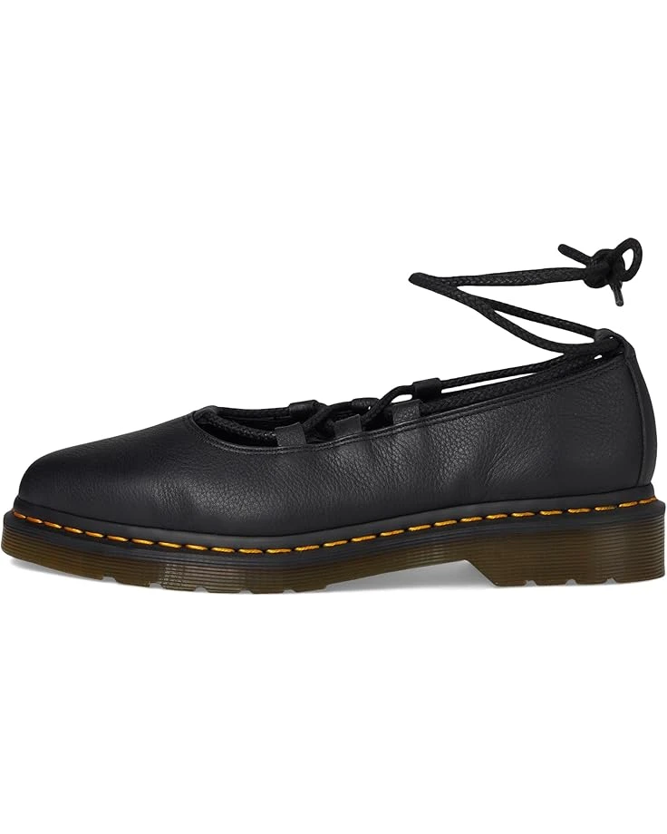- The Dr. Martens® Elphie Ii shoes are a twist on a classic. Less dainty, more Dr. Martens. These heeled ballet shoes are made from soft Virginia leather that’s fitted with wraparound laces that can easily be swapped out for a customized look. These leather shoes are made of a leather insole and lining. The tapered PVC outsole is marked with DM’s signature grooving pattern and secured with yellow welt stitching while the Goodyear welted construction makes them a durable footwear choice.