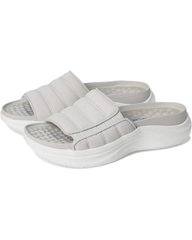 - Feel good, do good, and look good in the Dr. Scholl’s® Feel Free. The stretch Lycra fabric upper, partially made from recycled plastic bottles, adapts to your foot, while the slip-on design with a hidden stretch strap ensures a secure fit. The built-in Revitalize™ Recovery Insert features targeted stimulating bubbles to improve circulation, reduce fatigue, and prevent soreness. A dual-density EVA midsole and cushy BLOOM® foam footbed offer lightweight support, while the wedge heel adds a stylish lift. The odor-free, microbial-resistant topcloth keeps your feet fresh all day.