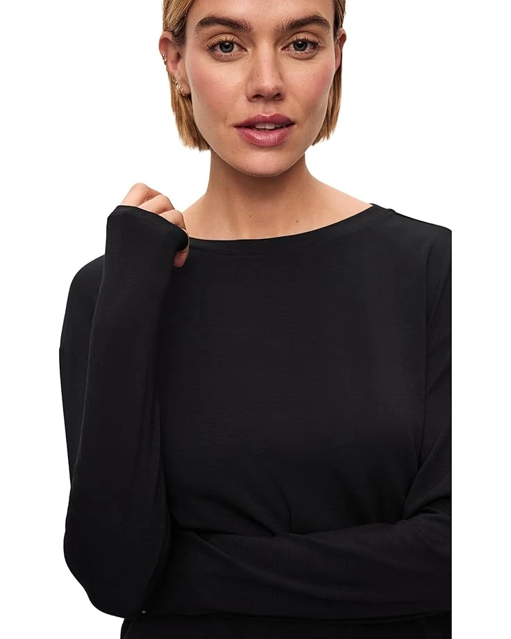 - The EberjeyĀ® Gisele Top is an ultimate sleepwear essential that keeps you feeling comfy throughout. It features a scooped boat neckline and slightly dropped shoulders for a relaxed look. With true-fit long sleeves, this top offers a snug, flattering fit.