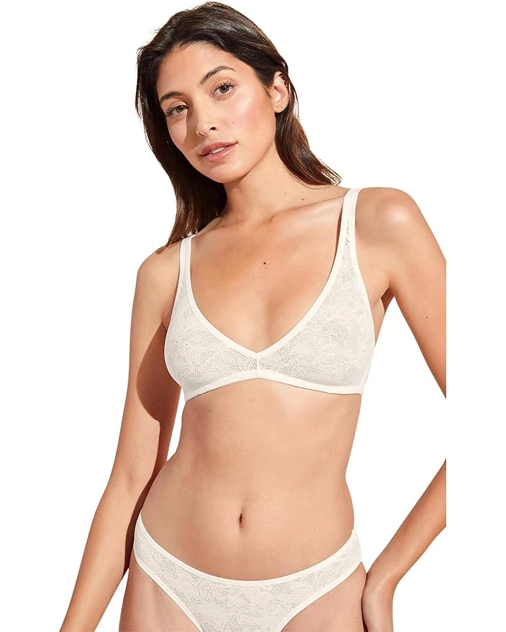 - Get a supportive layer for your every apparel wearing Eberjey® Soft Stretch Bralette. It features plunge coverage with built-up straps and soft comfortable elastic trim. It has adjustable brushed lace that moulds to your curves. A hook-and-eye closure ensure right fit.