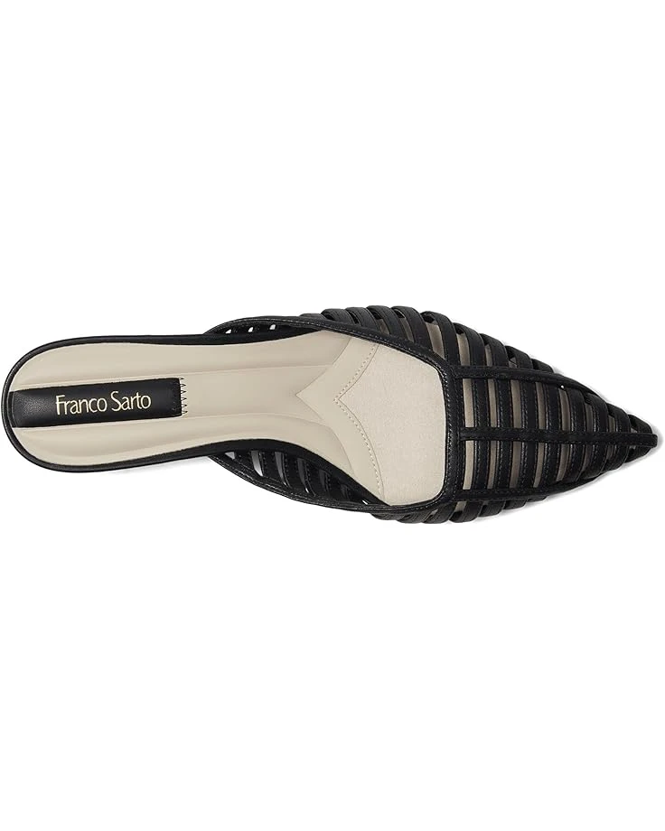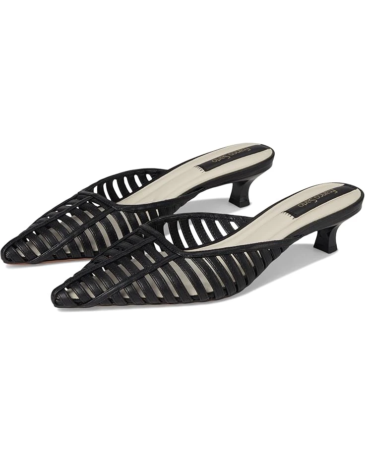 - The intricate leatherwork highlights a stunning design of Franco Sarto® Marlina, complemented by the perfect kitten heel for a touch of sophistication. Made with high-quality faux leather upper, these slip-on sandals offer a stylish option for your wardrobe.