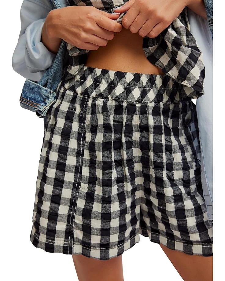 - Effortlessly cool and casually chic, these Free People™ Get Free Seersucker Pull shorts are the perfect addition to your laid-back wardrobe. With their mid-rise, relaxed boxer silhouette, they offer a flattering fit that’s comfortable all day long. The soft, breathable seersucker fabric adds texture and charm, while the classic gingham pattern brings a timeless yet trendy vibe to any outfit. Designed with a pull-on style, these shorts provide easy wearability and unmatched comfort.
