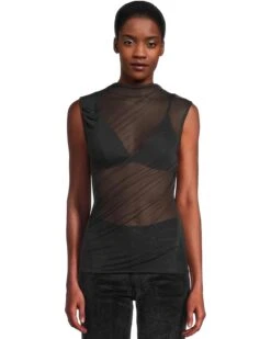 - The timeless silhouette and refined style of the Free People™ On Air Muscle Tank is sure to turn heads around. The pull-on style tank features a semi-sheer featherweight fabrication, a mock neck, a ruched front, a sleeveless design, and a straight hem.