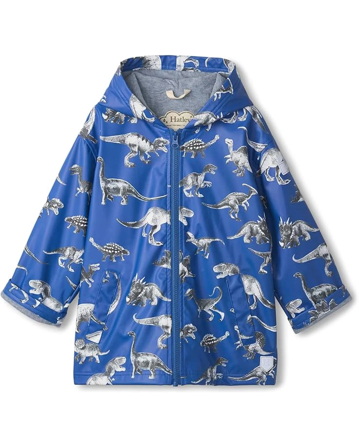 - Splash into style with Hatley®! Keep your little one snug and dry in the Hatley Kids Zip Up Rain Jacket, featuring a playful printed design that’s as fun as it is functional. With a zippered front closure, long sleeves, and an attached hood, this jacket offers full coverage against drizzles and downpours. Handy pockets are perfect for stashing treasures or keeping little hands warm. Crafted with quality and comfort in mind, this rain jacket is lightweight yet durable, making it ideal for rainy-day adventures.
