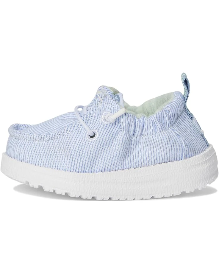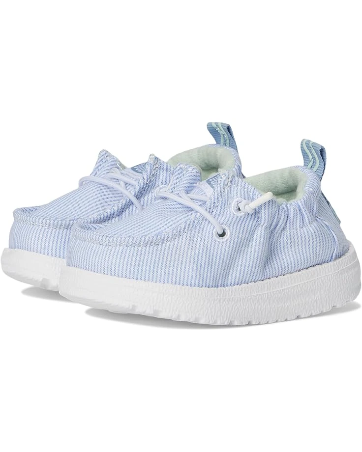 - One of the lightest pairs of shoes around, the Hey Dude™ Kids Lil Dudes Slip-On Prints shoes feature a Flex & Fold design that supports healthy feet with its unique shape. The canvas upper features lightweight elastic laces that allow them to flex with the foot, resulting in a shoe that fits more uniformly. They are made of a cotton lining and removable memory foam cushioned insole that provides maximum comfort and reduces sweating and odors. Machine washable and comfortable, these lace-up sneakers will be an instant favorite in your kid’s shoe collection.
