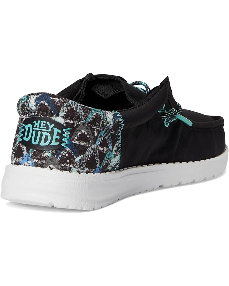 - Let your little explorer dive into all-day comfort sporting the Hey Dude® Kids Wally Funk Sharks-where fun meets function! Designed for unstoppable adventures, these lightweight slip-ons feature a breathable canvas upper and cotton lining for a fresh, airy feel. The rounded toe design and Flex & Fold™ technology ensure natural movement, while elastic laces provide a snug yet flexible fit. With an EVA insole and outsole, every step feels cushioned and cloud-like. Plus, the odor-reducing, removable memory foam insole keeps tiny feet fresh.