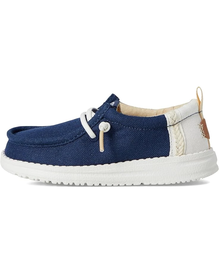- Easy, breezy, textile makes this Hey Dude™ Kids Wally Summer Linen sneaker ready to roam. Easy-on elasticized laces, EVA outsole, and removable insole provide go-to comfort. Designed with you in mind. This Wally shoe boasts the comfort of walking on clouds. Featuring an insole that reduces odors, a lightweight outsole, and breathable cotton fabric. The removable memory foam cushioned insole provides maximum comfort and reduces sweating and odors.