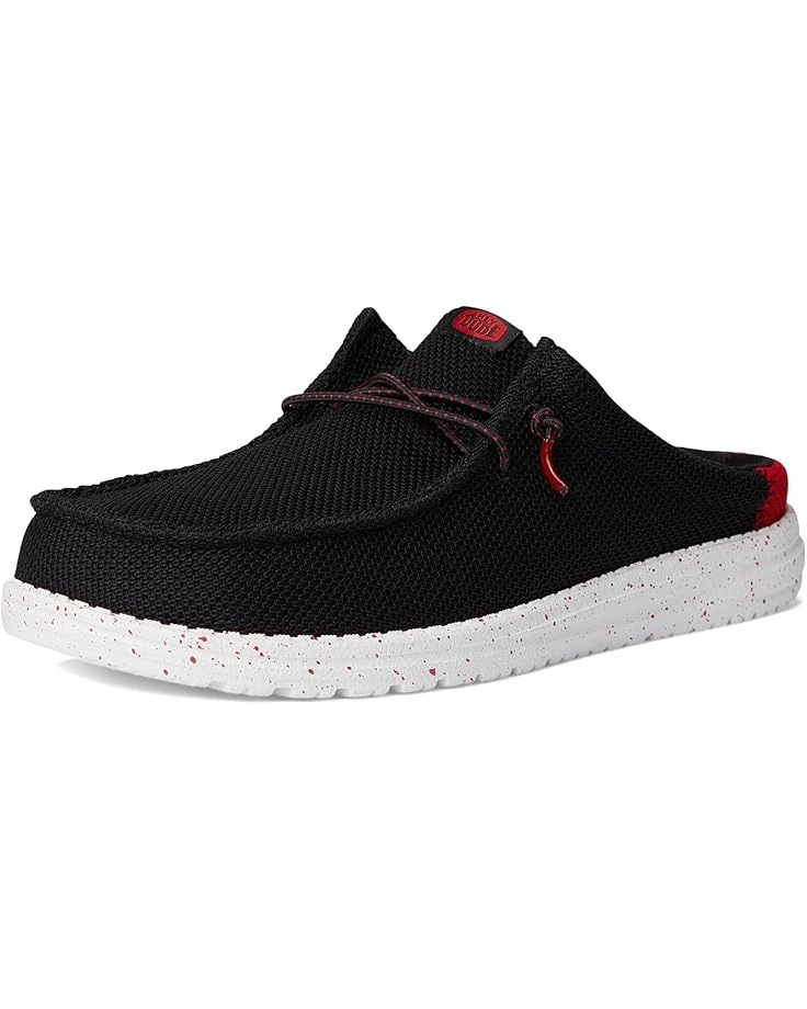 - Have you heard? Hey Dude® Wally Slip Varsity vibes are in. We took the open mesh of your favorite old-school basketball shorts and owned tailgate style this season with Wally Varsity Jersey Slip. Jersey mesh and removable foam insole mean varsity-level comfort and style. Slip into the ultimate go-to party shoe. Designed with you in mind. This Wally shoe boasts the comfort of walking on clouds. Featuring removable memory foam cushioned insole that provides maximum comfort and reduces sweating and odors, lightweight outsole, and breathable cotton fabric.