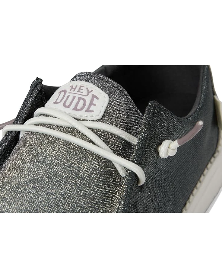 - Experience unmatched comfort wearing the Hey Dude® Wendy Metallic Sparkle! Featuring textile upper and lining, these shoes boast removable memory foam cushioned insole with arch support for ultimate comfort and odor control. The rounded toe design and Flex & Fold technology provide healthy feet with freedom of movement.