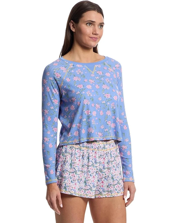 - Get ready to cozy up in our Honeydew Intimates™ Cuddle Crew Short Set! A relaxed long sleeve crew neck top with a dorito detail, paired with flowy, elasticized waist shorts in soft rib jersey fabric. The pull-on style top has a straight hem and a cropped style.