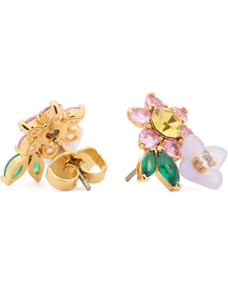 - Leave a glamorous impression with the Kate Spade New York® Set In Bursting Blooms Cluster Studs. Featuring brass metal and stainless steel construction, the pair has czech glass stone and cubic zirconia adornments.