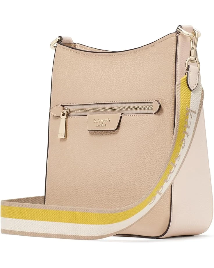 - Enjoy your travel carrying the functional and stylish Kate Spade New York® Hudson Colorblocked Pebbled Leather Messenger Crossbody. Crafted from leather, this bag features zippered closure, detachable and adjustable crossbody strap, one zippered exterior pocket, one exterior slip pocket, and one interior slip pocket.