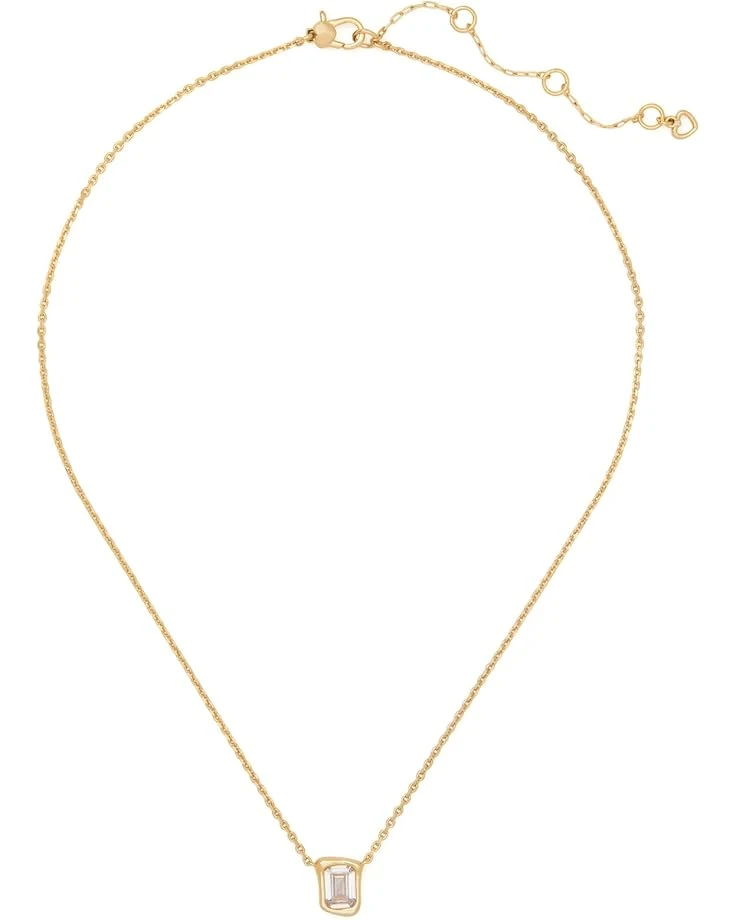 - The Kate Spade New York® Molten Glass Pendant is perfect for the fashion-forward individual who loves making a statement. Crafted with brass and adorned with cubic zirconia stones, this pendant is sure to make a statement. The signature lobster claw closure provides a secure fit, making it great for everyday wear.