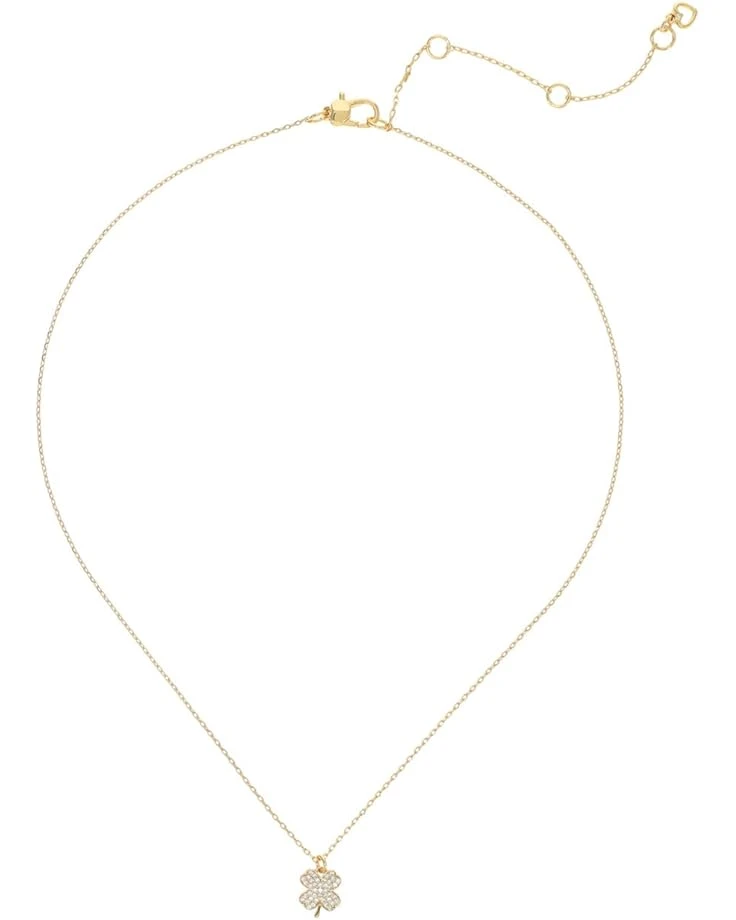 - Add a bit of sparkle to your everyday attire with this Kate Spade New York® Pave Clover Pendant. Crafted with brass and steel, this pendant has 9K metal stamp, ensuring durability. The adjustable lobster clasp closure allows for a customized fit.