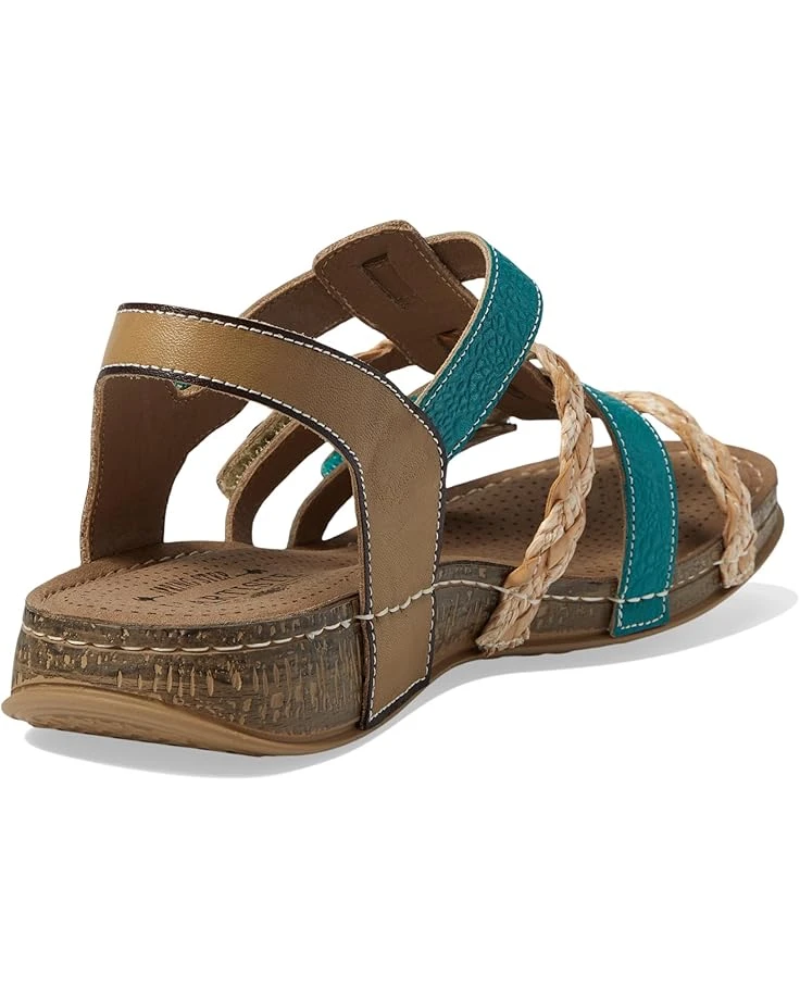- Add a bold look to your outfits wearing the L’Artiste by Spring Step® Delila sandals. The leather upper of these sandals features a strappy design and dainty antique embellishments that give them an eye-catching appeal. These stylish sandals are crafted with a cushioned footbed and faux leather lining. The multiple adjustable hook-and-loop straps ensure a secure fit. Flaunt your great style wearing these leather sandals.