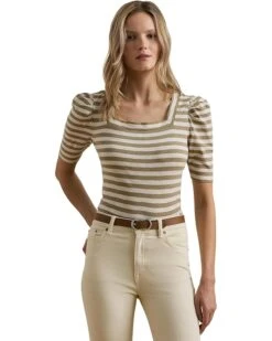 - An elevated take on casual style, this Lauren Ralph Lauren® Petite Dalmaz Mid Sleeve T-Shirt is characterized by feminine puffed sleeves, a square neckline, and yarn-dyed stripes. It’s made with a breathable cotton slub jersey for subtle texture and a soft hand.