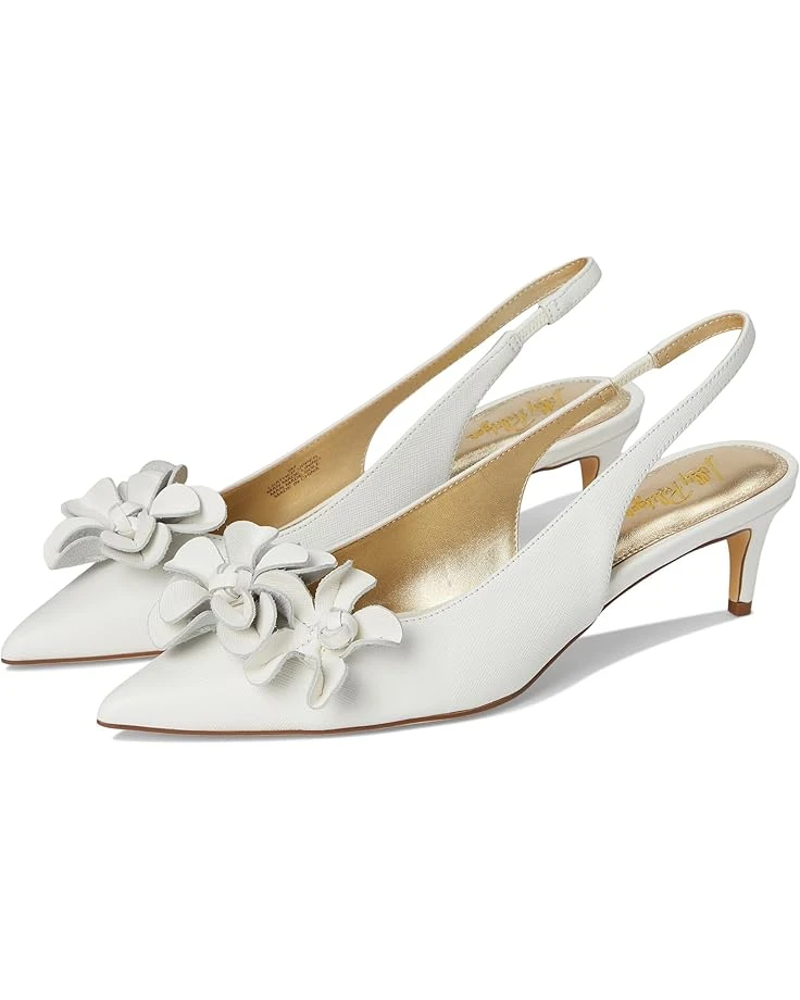 - The Lilly Pulitzer® Amalia Kitten Heels are Saffiano leather slingback sandals with a 3D floral trim. These heeled sandals come with a plush padded leather footbed and leather lining for all-day comfort. Easy to slip on and off, these leather heels are an ideal choice to match your party outfits and chic dresses.
