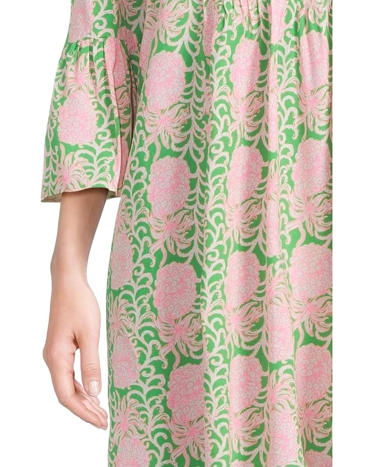 - Effortless elegance awaits when you put on the Lilly Pulitzer® Danika 3/4 Sleeve Tunic Dress. This dress skims your curves for a polished, put-together look. This easy fit dress features a flattering V-neckline with charming pintuck details, three-quarter-length sleeves for a touch of coverage, and a playful ruffle hem.