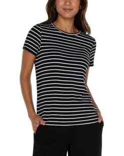 - Step up your style game by choosing the Liverpool⢠Los Angeles Short Sleeve Crew Neck Classic Knit French Terry Tee! Expertly designed in our premium yarn-dyed stripe baby French terry, this tee offers exceptional quality and comfort. The crew neckline and short sleeves make it perfect for warmer days.