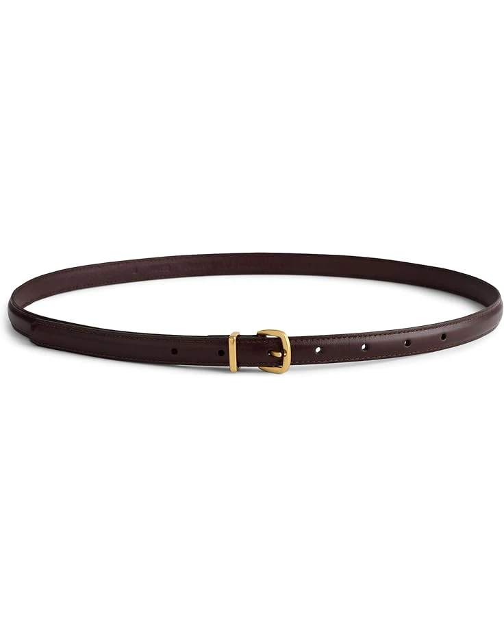 - Complete your ensemble wearing the Madewell® Skinny Essentials Belt. Crafted from supple leather and adorned with shiny goldtone hardware, this skinny belt exudes sophistication. The single-prong buckle closure offers a seamless finishing touch for a polished and put-together appearance.