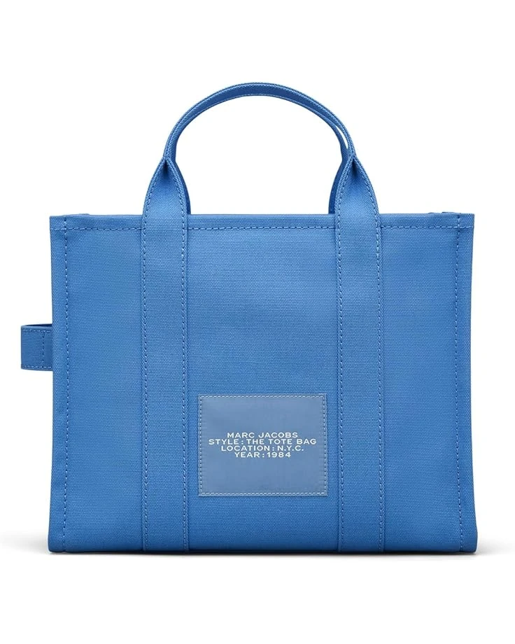 - The Marc Jacobs® The Canvas Medium Tote Bag strikes a graceful appeal and keeps belongings securely stored. Crafted with premium cotton canvas fabric, the tote bag features a logo print on the front, an applique logo, contrasting trim, two flat top handles, a single flat side handle, top zip fastening, a main compartment, and multiple internal slip pockets.
