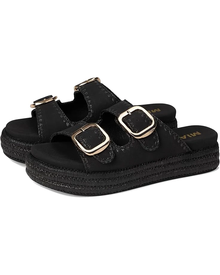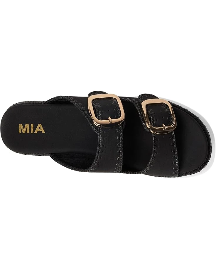 - The double strap sandal of your dreams. The MIA™ Mieko features woven detail with vegan leather and signature anatomical footbed. Offering slip-on ease, the platform footwear features buckle accented straps and peep toe silhouette.