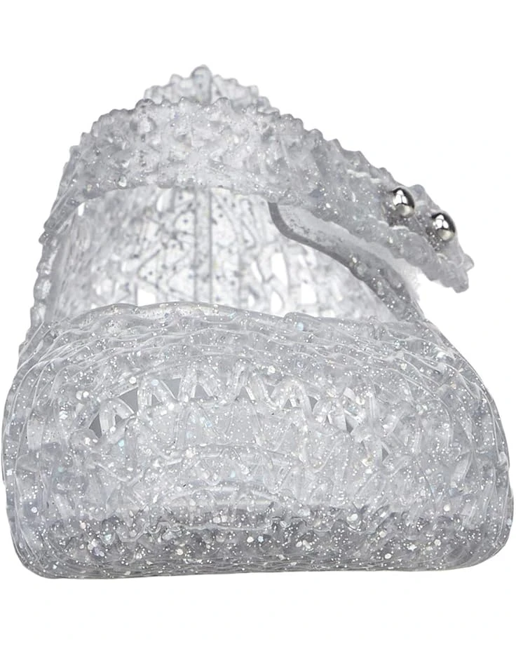 - The Mini Melissa® Campana Papel BB flats are a sparkly, fruit-scented jelly flat with playful retro charm has a hook-and-loop Mary-Jane strap for easy on and off.