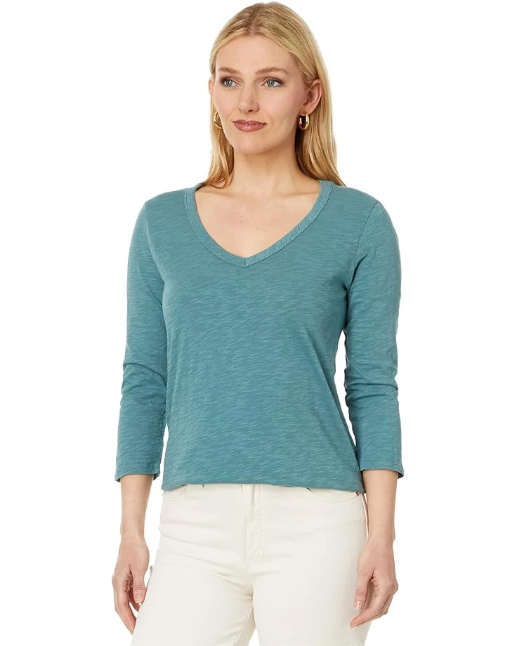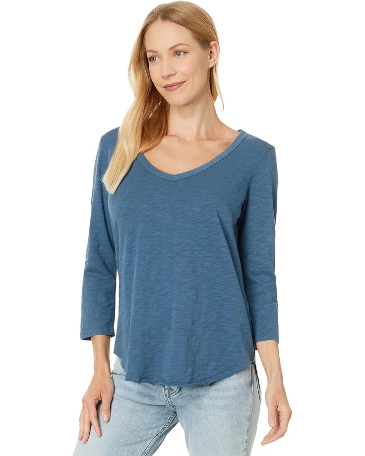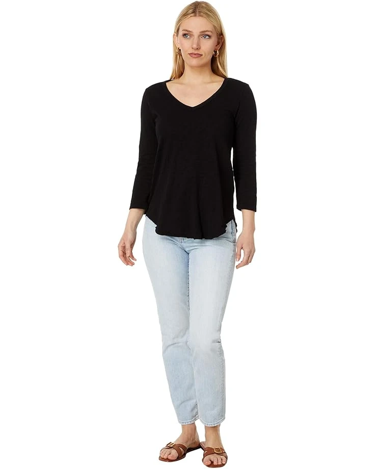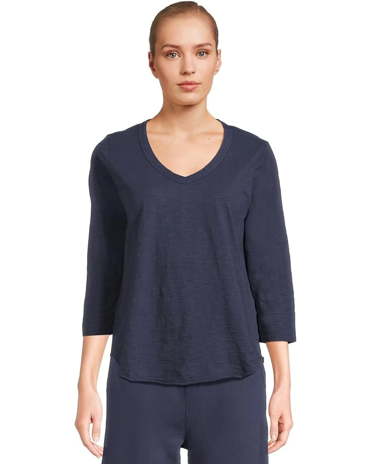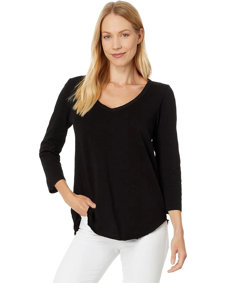 Mod-o-doc 3/4 Sleeve V-Neck Tee with Curved Hem | Shirts & Tops