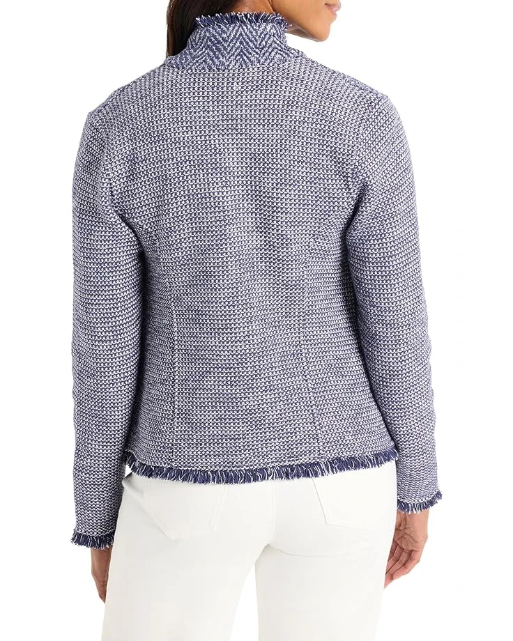 - A new addition to the ICO(NIC) Fringe Mix family, the NIC+ZOE™ Notch Collar Fringe Mix Knit Jacket comes with a more traditional notch collar and long sleeves. It still features the perfect combination of knitwear comfort and softness plus the polish and sophistication you’d expect from a classic blazer. Unlined with an open front and a straight hem that sits at the hip, this knit jacket comes with two on-seam pockets that add some utility to the artistry.