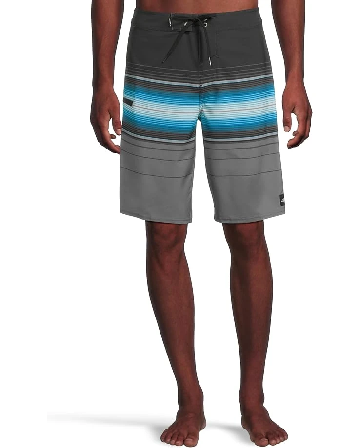 - Take on style and functionality as you step on the beach wearing O’Neill® Hyperfreak Heat Stripe 21 Boardshorts. The pull-on style shorts are crafted with O’Neill® Blue Hyperfreak Stretch With Repreve, O’Neill® Hyperdry DWR Technology, and an anti-rash hyperthread. It features a flex tie drawcord, side zip pocket, striped print, and an above-the-knee silhouette.