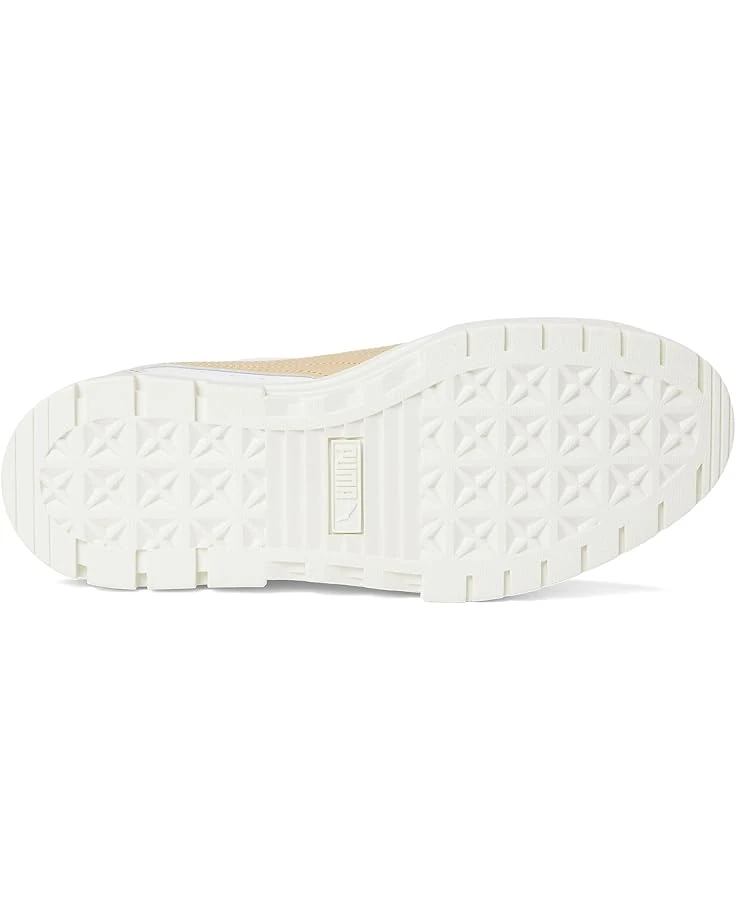 - Get ready to find your style in PUMA® Mayze Sneakers. This stand-out silhouette takes design inspiration straight from the streets, with a stacked rubber outsole for an edgy, layered look. This premium execution features a full leather upper and formstripe, and a matt finish TPU in the midsole. The three-piece rubber tooling at the midsole, along with textured toe and heel details, creates a distinctive stacked sole design. The rubber outsole ensures both durability and reliable grip, keeping you steady on various surfaces. Sleek PUMA Formstrip on lateral and medial sides, with iconic PUMA branding on the tongue and heel.