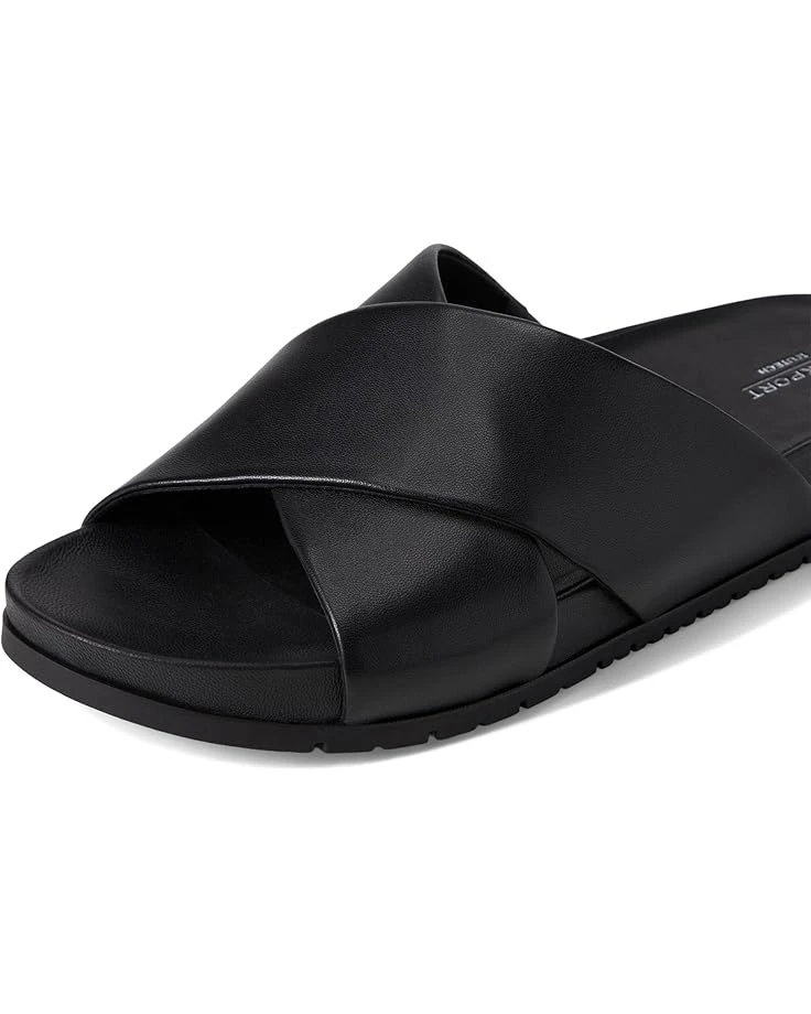 - A staple for any wardrobe, the Rockport® Leia casual sandal combines style and comfort. This sandal features a slip-on silhouette, crisscross straps and a round toe. This sandal will keep you looking chic all-day. Featuring truTECH® technology for lightweight shock absorption.